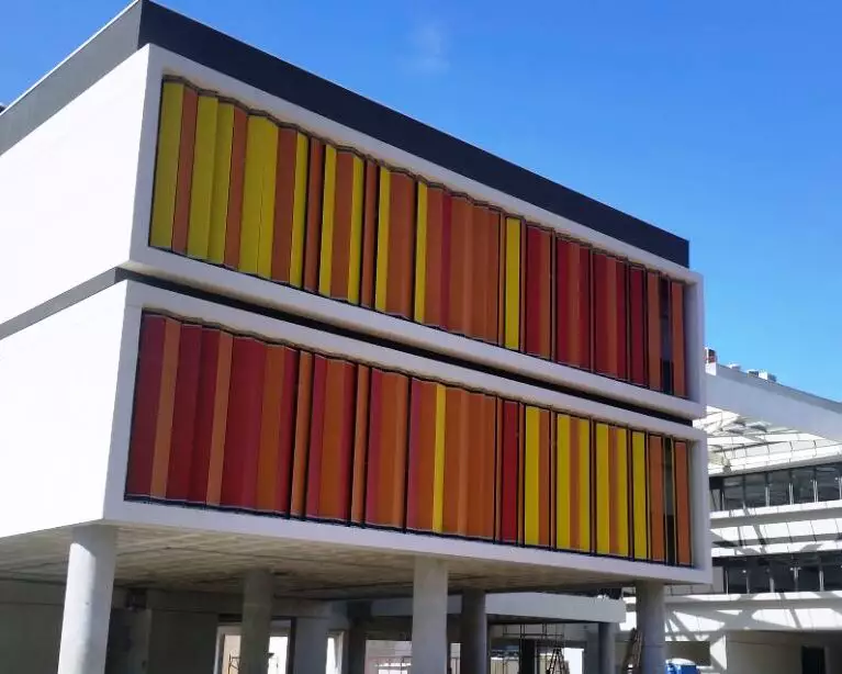 Brises coloridos na fachada.
