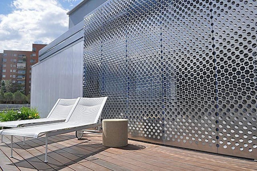 • Chapas perfuradas: Essas chapas são excelentes para divisórias, pois permitem a passagem de luz e ar ao mesmo tempo que oferecem privacidade parcial. Podem ter diferentes padrões de perfuração para alcançar diferentes níveis de transparência e privacidade. Leia mais sobre chapas perfuradas neste artigo.